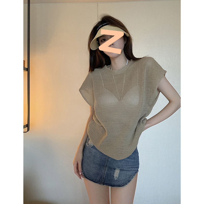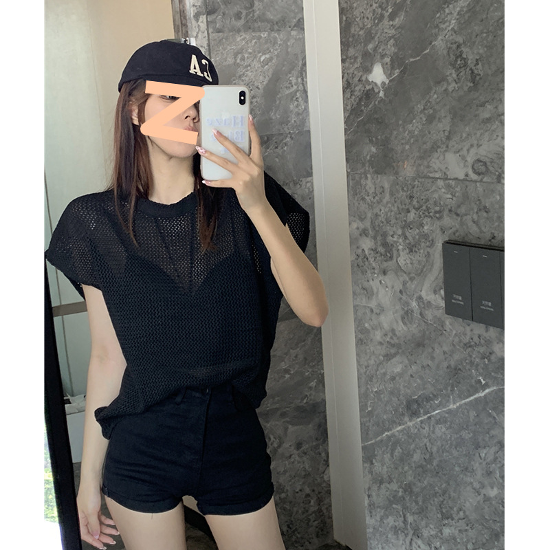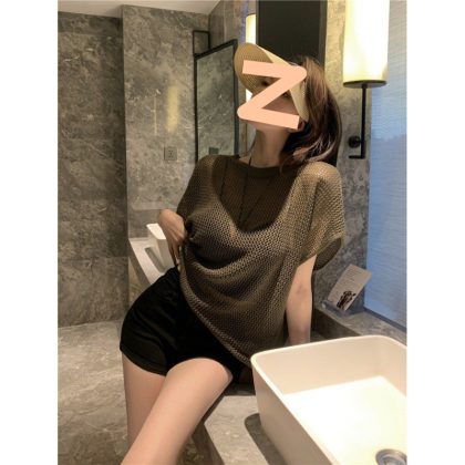 | nameOriginal | 2023 Summer new elegant transparent hollow sweater hot girl Western style loose fashion short sleeve cool silk |