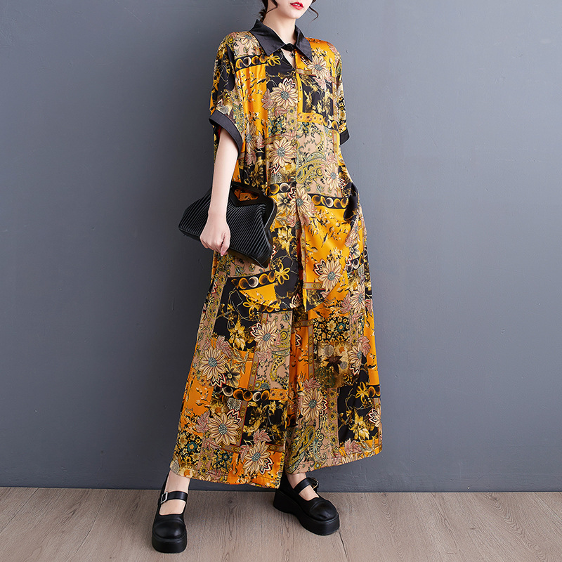 | nameOriginal | 2023 Summer New Ethnic Style Printed Contrast Color Mid-length Shirt Loose Wide-leg Pants Two-piece Suit |