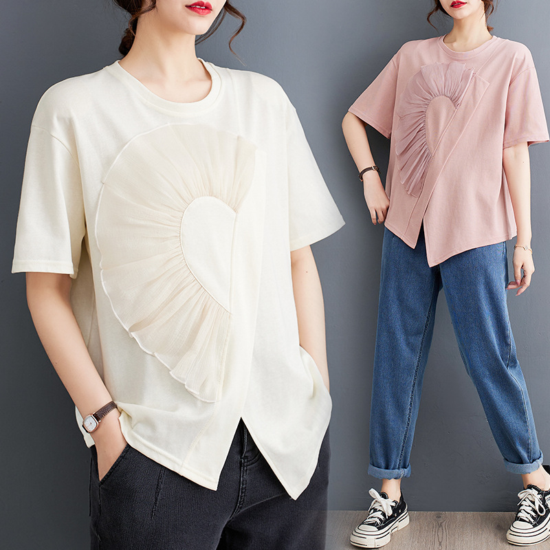 | nameOriginal | 2023 Summer New Fat Girls Western Style Age-reducing Design Sense Loose Casual All-match Stitching Pullover Short-sleeved T-shirt Trendy |