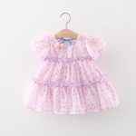 | nameOriginal | 2023 Summer New Girls' Back Ribbon One Flower Color Point Yarn Skirt Korean Style Puff Sleeve Princess Skirt |