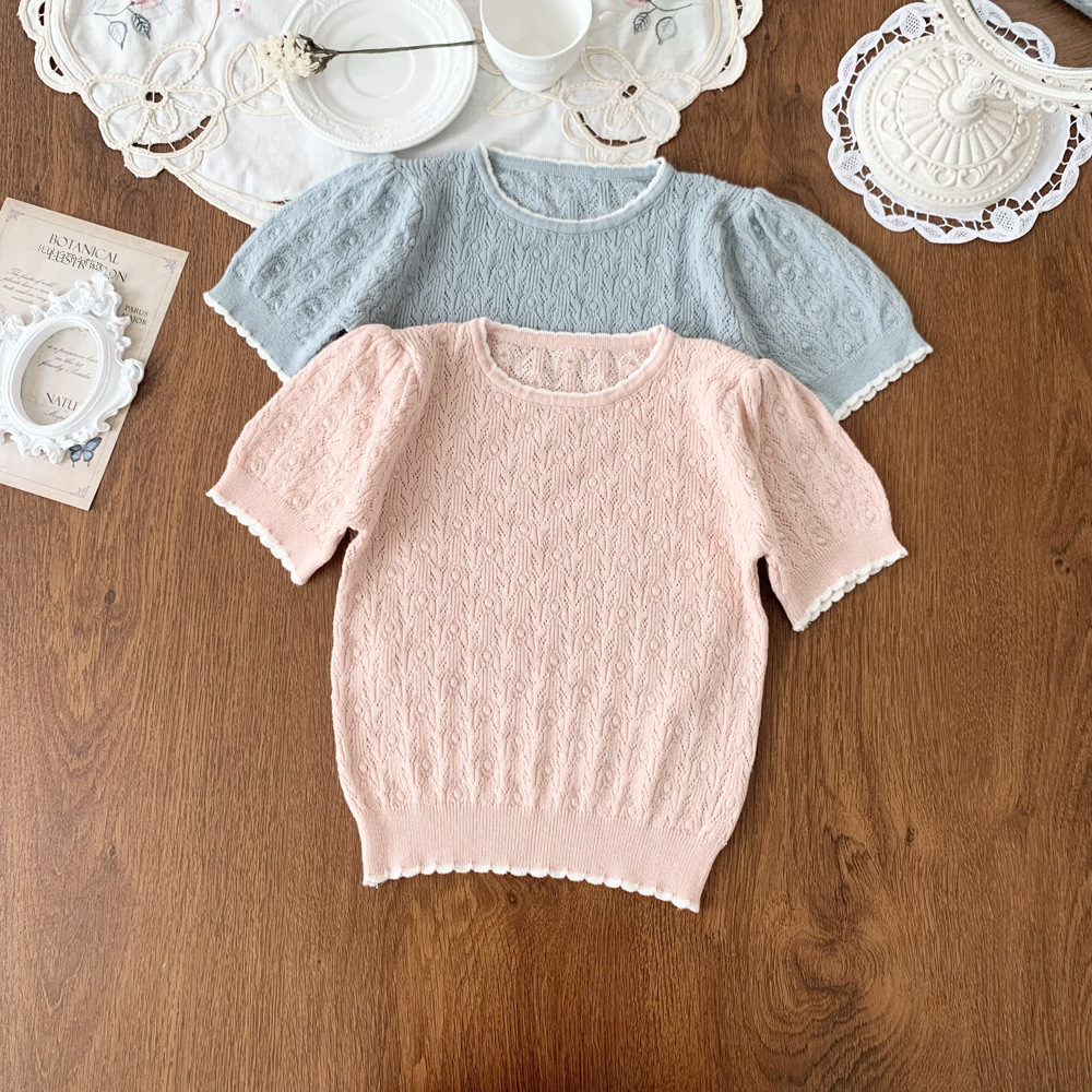 | nameOriginal | 2023 Summer New Girls Short-sleeved Sweater ins Nordic Hollow Cotton Knitted Short-sleeved Shirt |
