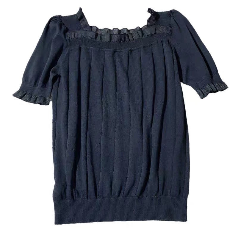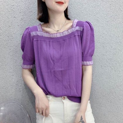 | nameOriginal | 2023 Summer New Korean Style Loose Slimming Internet Celebrity Same Style Lace Stitching Square Neck Short Sleeve Sweater for Women |