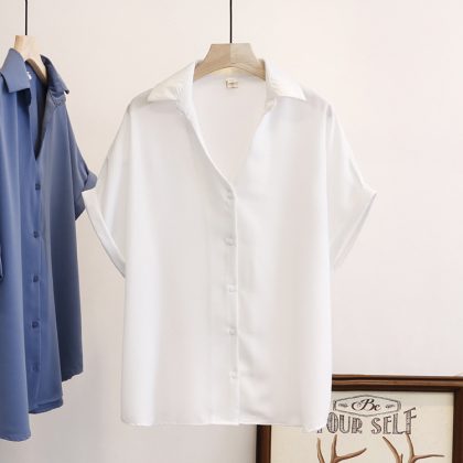 | nameOriginal | 2023 Summer new Korean version of 200kg fat MM simple V collar short sleeve shirt Joker jacket plus size women's 7663 |