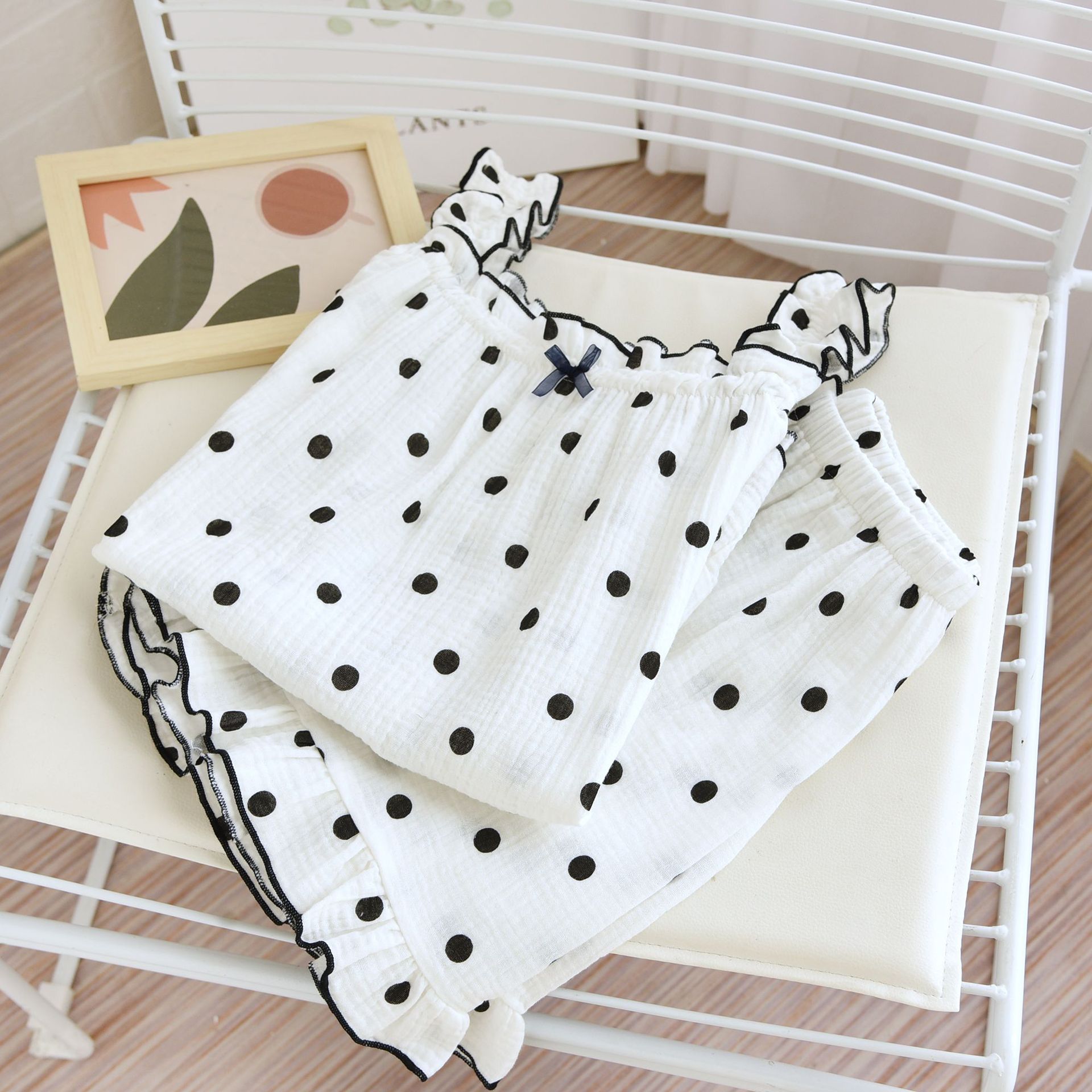| nameOriginal | 2023 Summer Wave Point Sling Short Cover Double Cotton Yarn Women's Pajamas Lightweight Breathable Home Wear Factory Direct Supply |