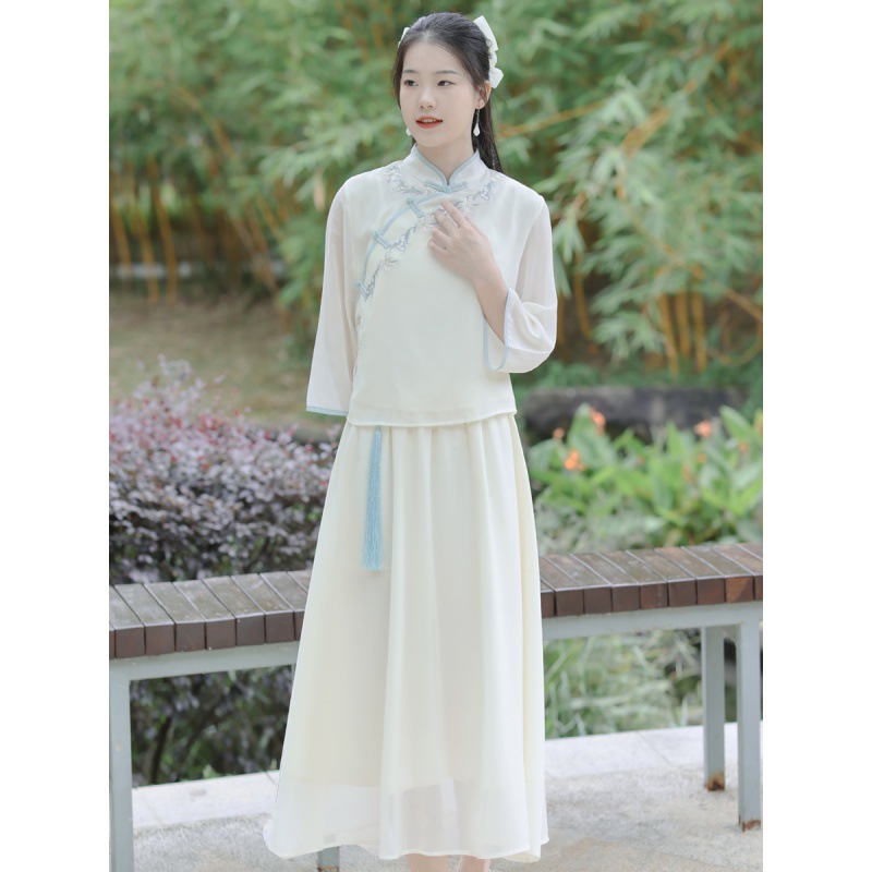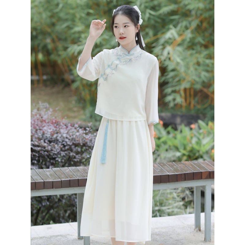 | nameOriginal | 2023 Tea Picking Summer New Style Republic of China Style Lily Lily Embroidered Waist Short-sleeved Cheongsam Women's Elegant Suit |