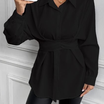 2024 AliExpress wish Amazon explosions autumn lapel lace bow waist slim shirt women's clothing