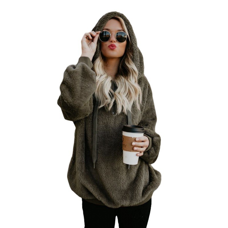 2024 Amazon AliExpress Explosions European and American Long Sleeve Hooded Solid Color Women's Sweater Sweater Jacket