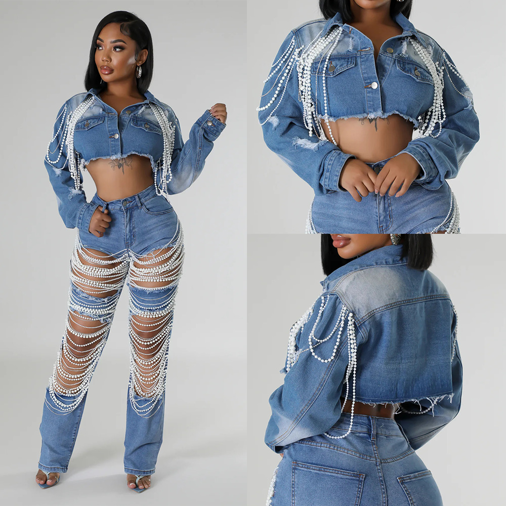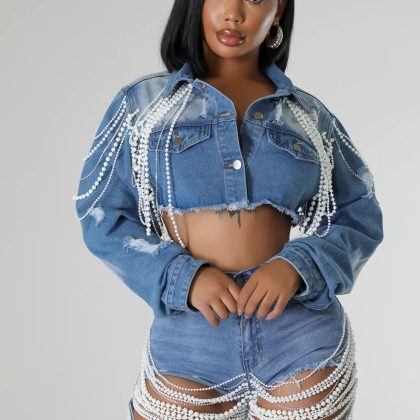 | nameOriginal | 2024 Amazon AliExpress Fashion Cross-border European and American Pearl Chain Fashion Women's Denim Coat 16889 |
