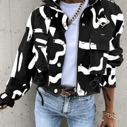 2024 Amazon AliExpress New Autumn and Winter Printed Short Casual Coat Women's Clothing