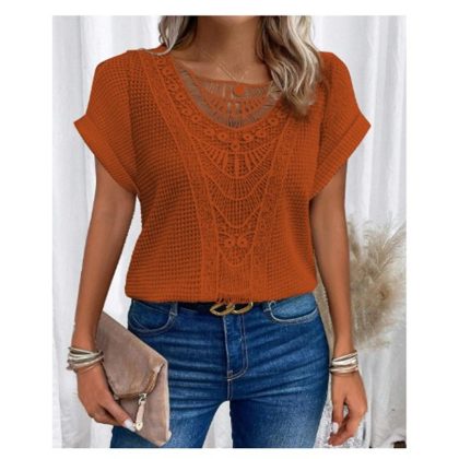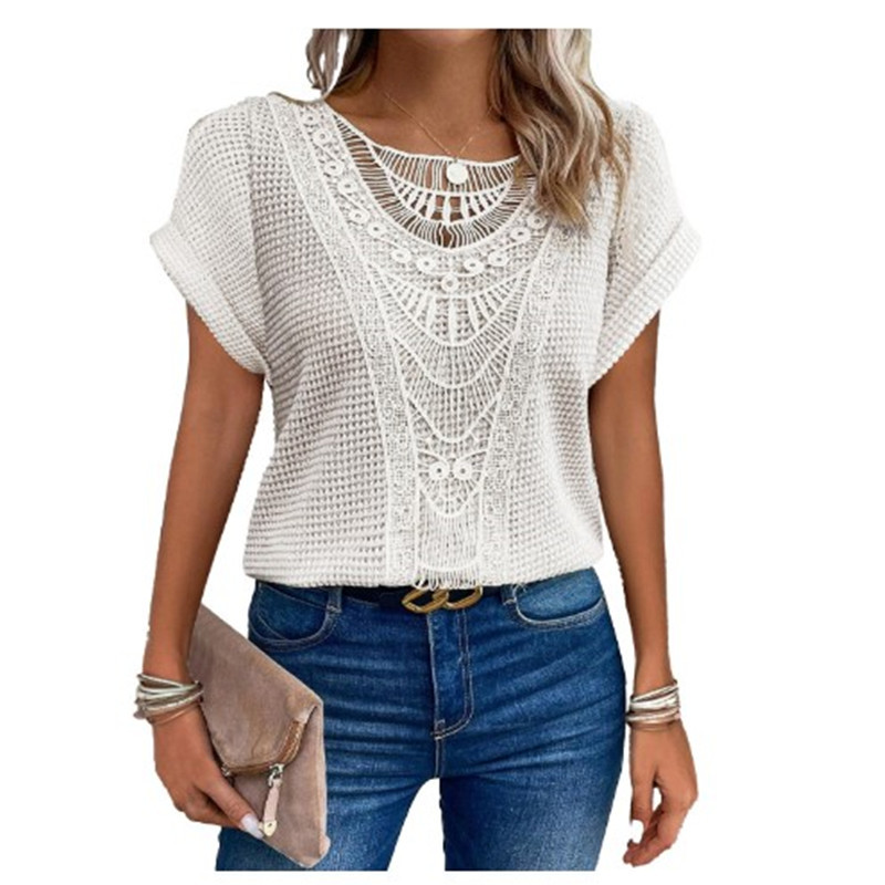 | nameOriginal | 2024 Amazon European and American cross-border foreign trade new women's round neck short sleeve lace waffle top T-shirt 2410 |