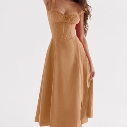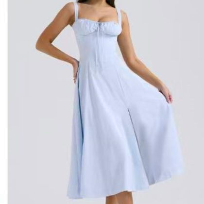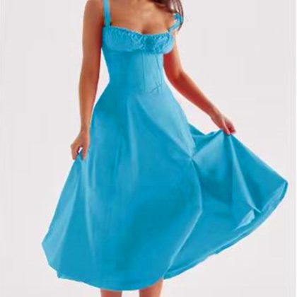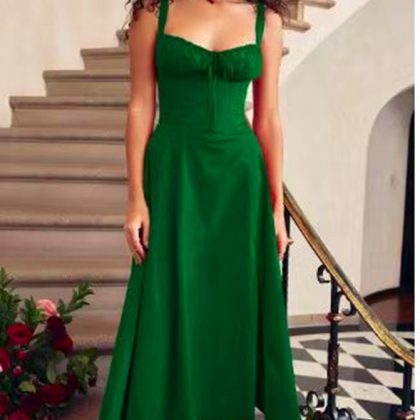 2024 Amazon popular summer Foreign trade commuter elegant solid color fashion high-end sling dress skirt for women