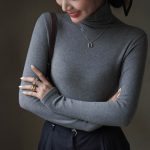 قميص خريفي وشتوي 2024 من الكشمير ذو الياقة المدورة قميص نسائي مبطن بالصوف سميك ناعم تي شيرت سفلي ضيق
