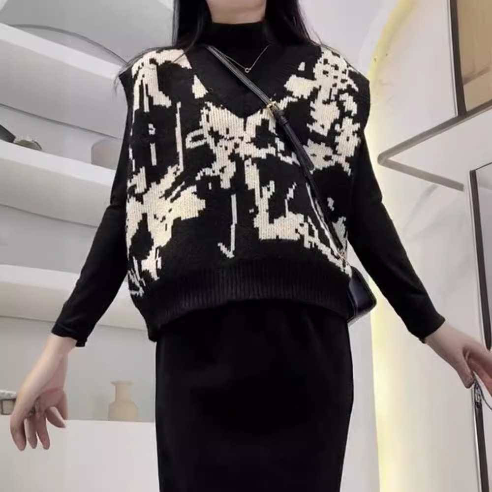 | nameOriginal | 2024 Autumn and Winter New European Knitted Vest Cashmere Colored Jacquard Loose Fashion V-Neck Outer Wearing Women's Vest |