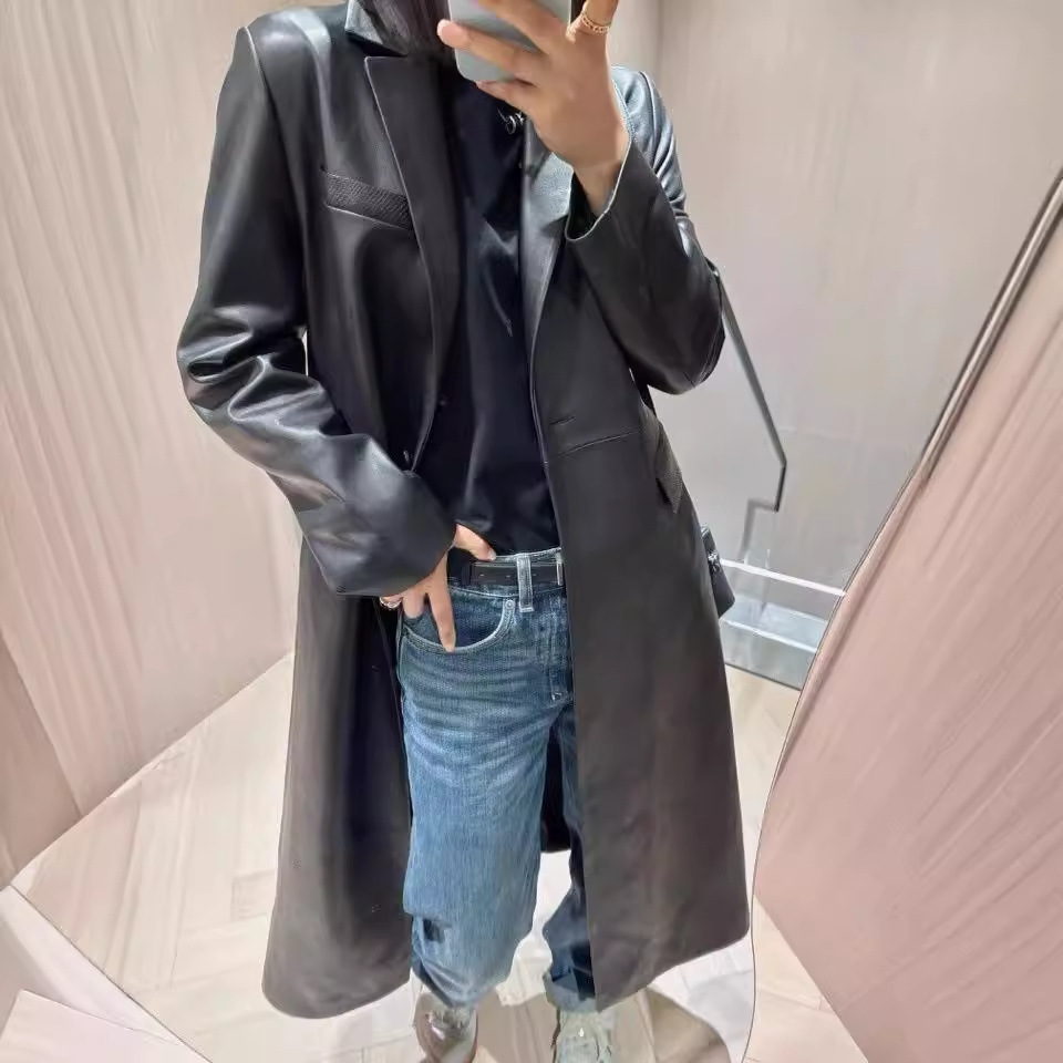 | nameOriginal | 2024 Autumn and Winter New Imported Lambskin Suit Collar Long Leather Coat Elegant and Capable All-match Leather Coat |