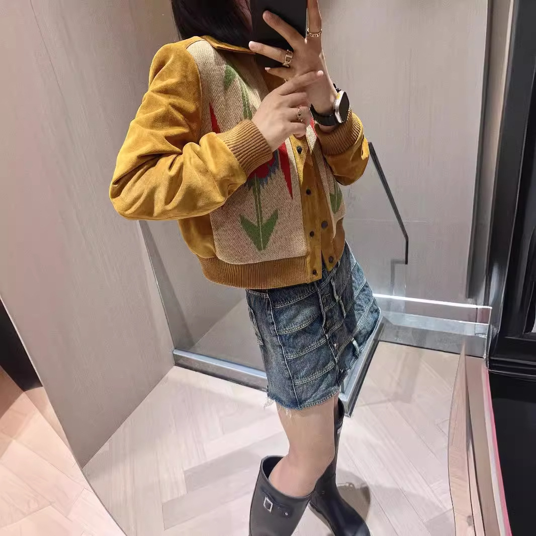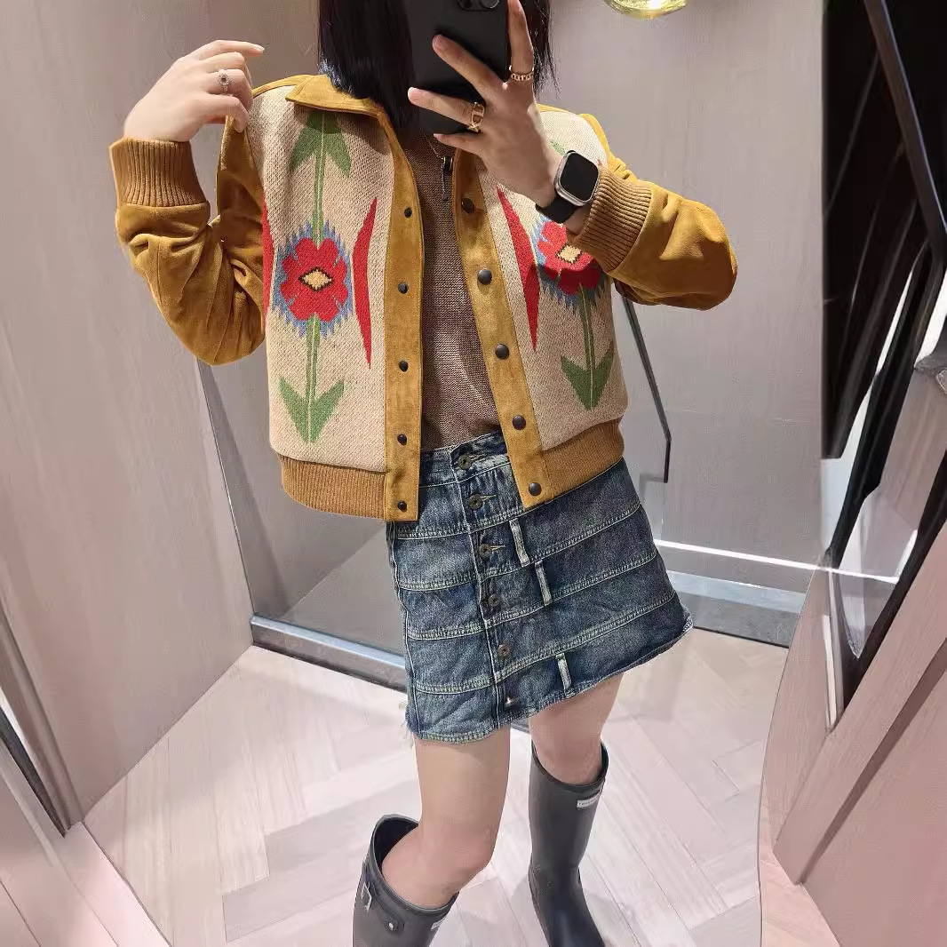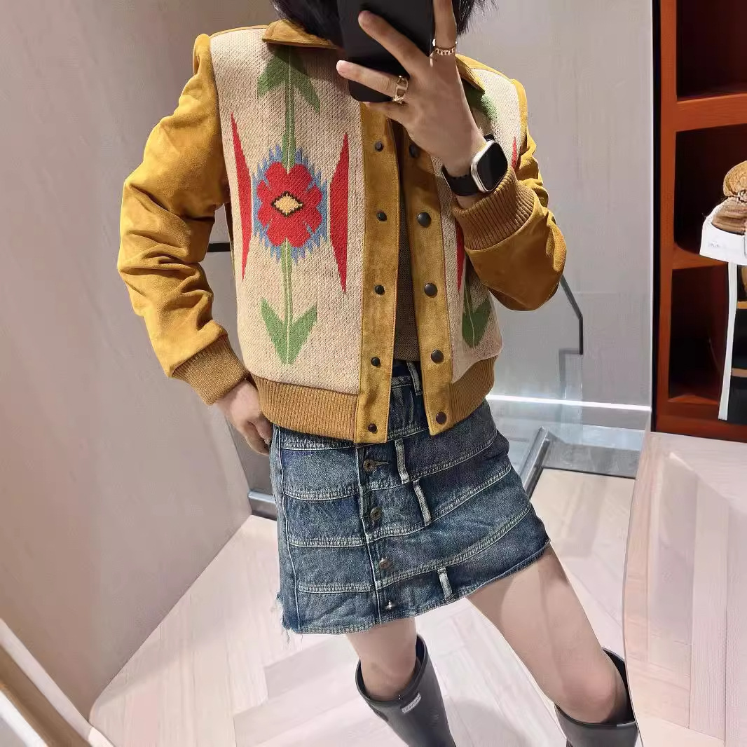 2024 autumn and winter new vintage literary imported suede leather jacket heavy wool stitching embroidery low-key luxury