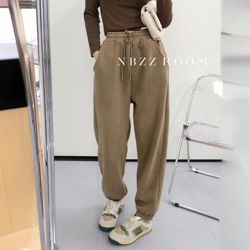 2024 autumn and winter/warm and soft glutinous polar fleece closed sweatpants women's loose fleece-lined thickened sports casual pants