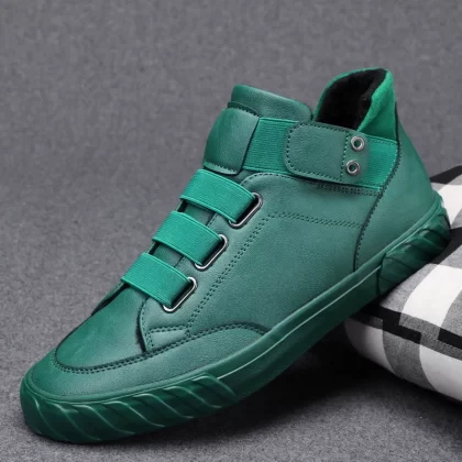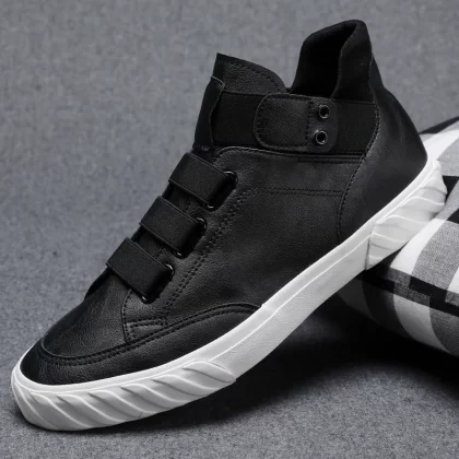 2024 autumn men's shoes new high-top shoes Korean version versatile trendy shoes one-leg high-top sneakers British leather shoes short boots