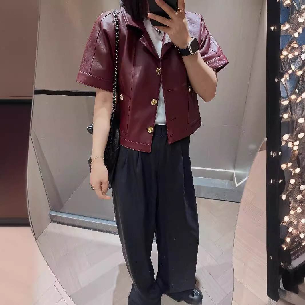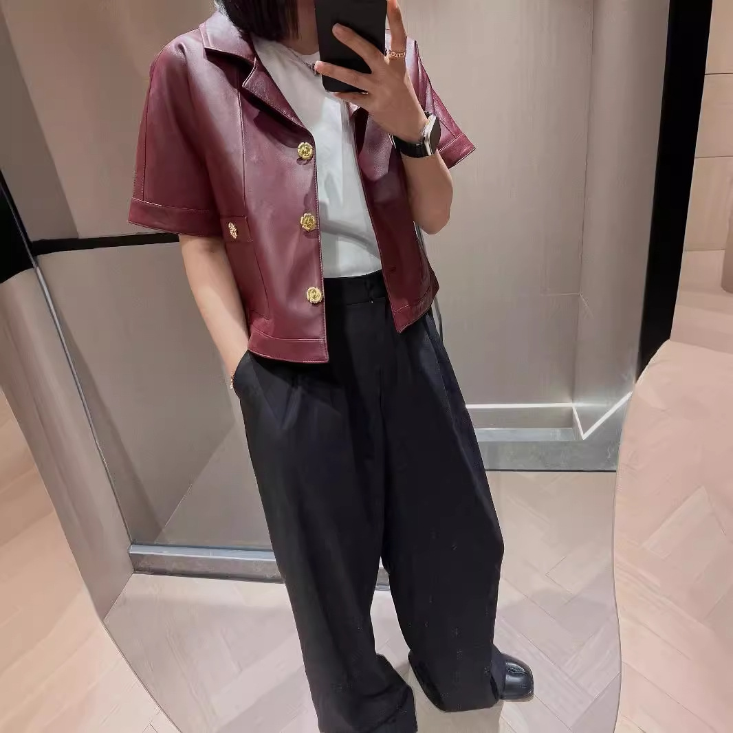 | nameOriginal | 2024 Autumn New Metal Camellia Buckle Imported Lambskin Short Sleeve Leather Jacket Vintage Suit Short Sleeve Design |