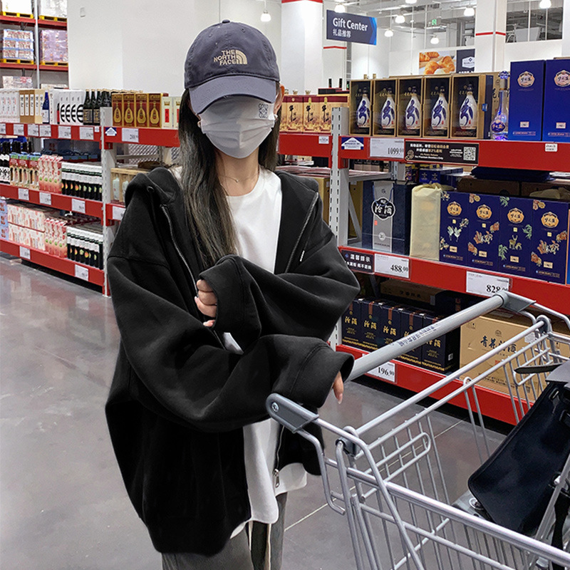 2024 cardigan early spring new gray coat women's zipper thin cardigan hooded small Top Spring and Autumn Sweater