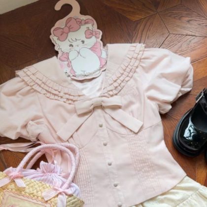 | nameOriginal | 2024 Children's Wear Girls Summer Lasagna Bubble Shirt Slim Sweet Bow Ear Waist Cake suit |