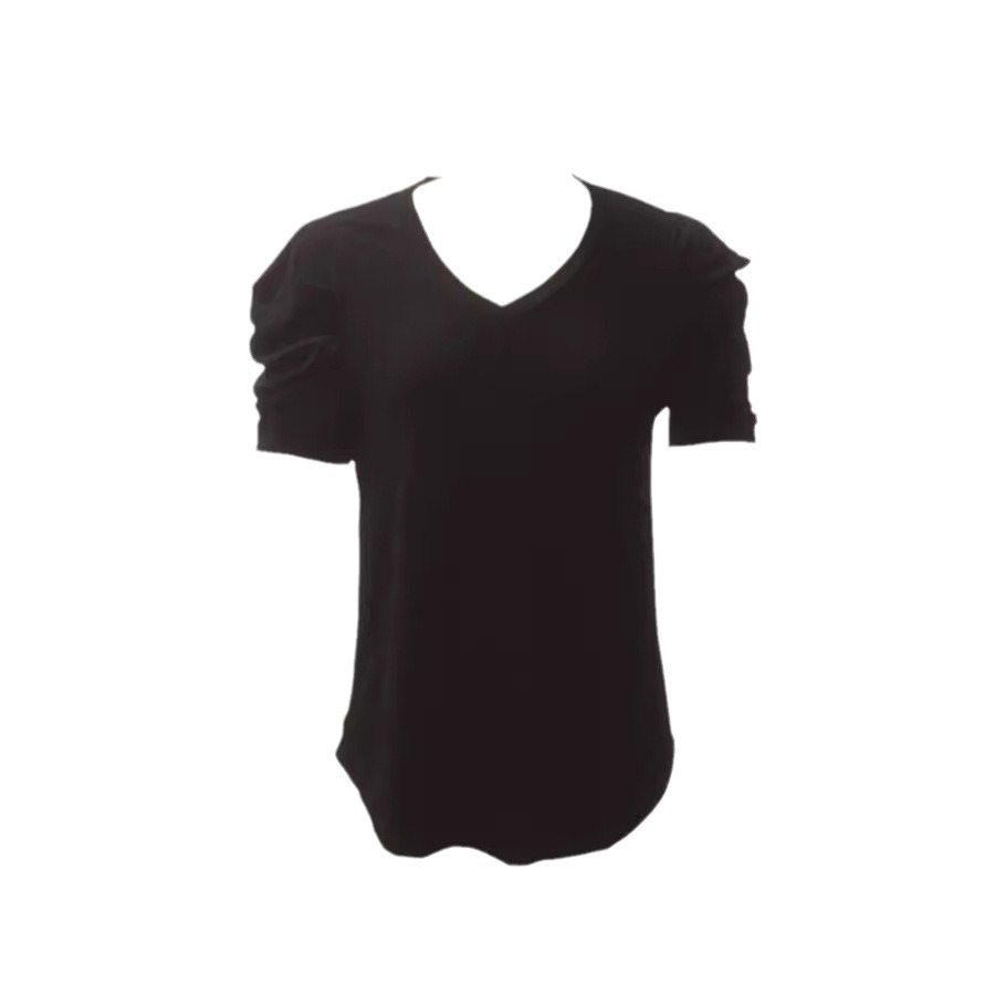| nameOriginal | 2024 Cross-border European and American Women's New Summer Casual Top V-neck Curved Hem T-shirt Puff Sleeve Short-sleeved Top |