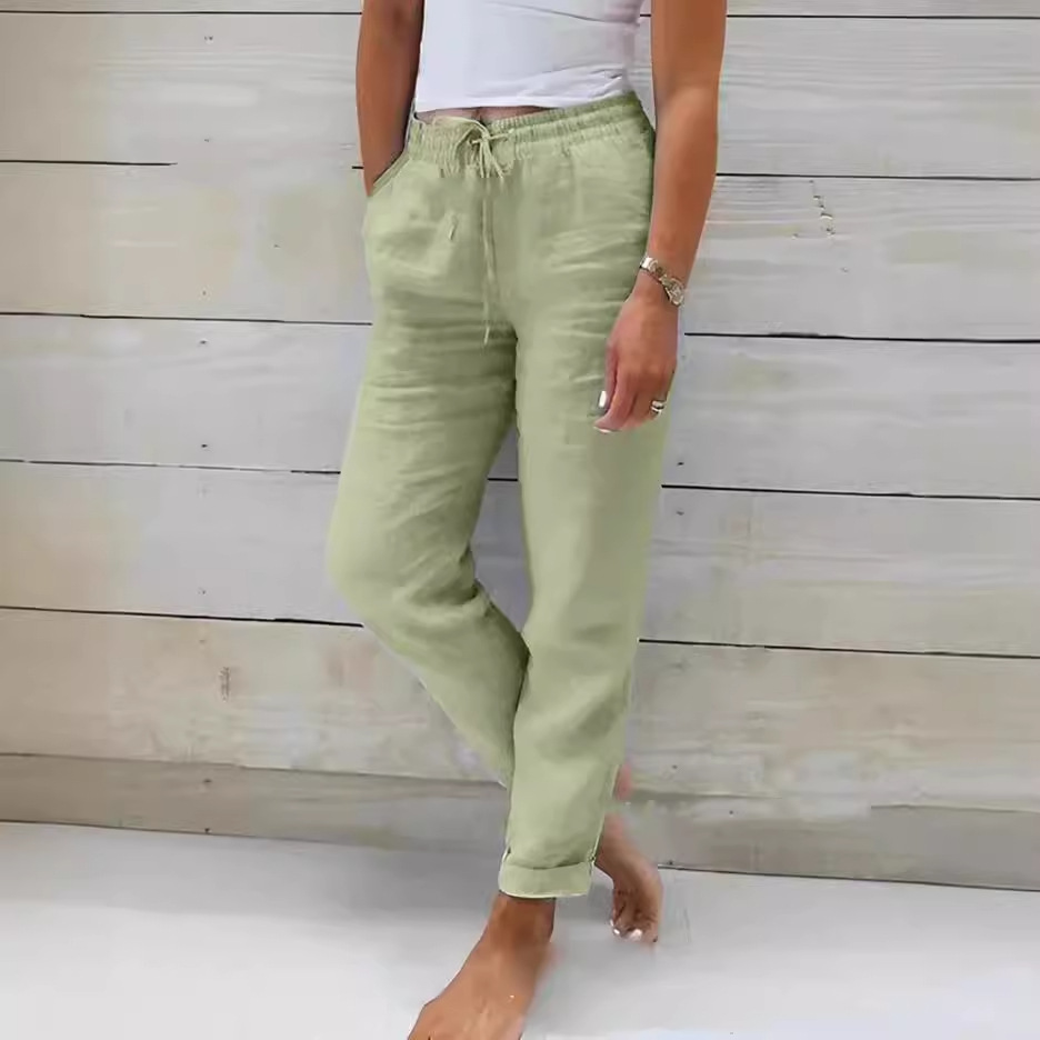 2024 cross-border independent station wish AliExpress summer elastic waist solid color cotton and linen wide leg pants loose trousers women's clothing