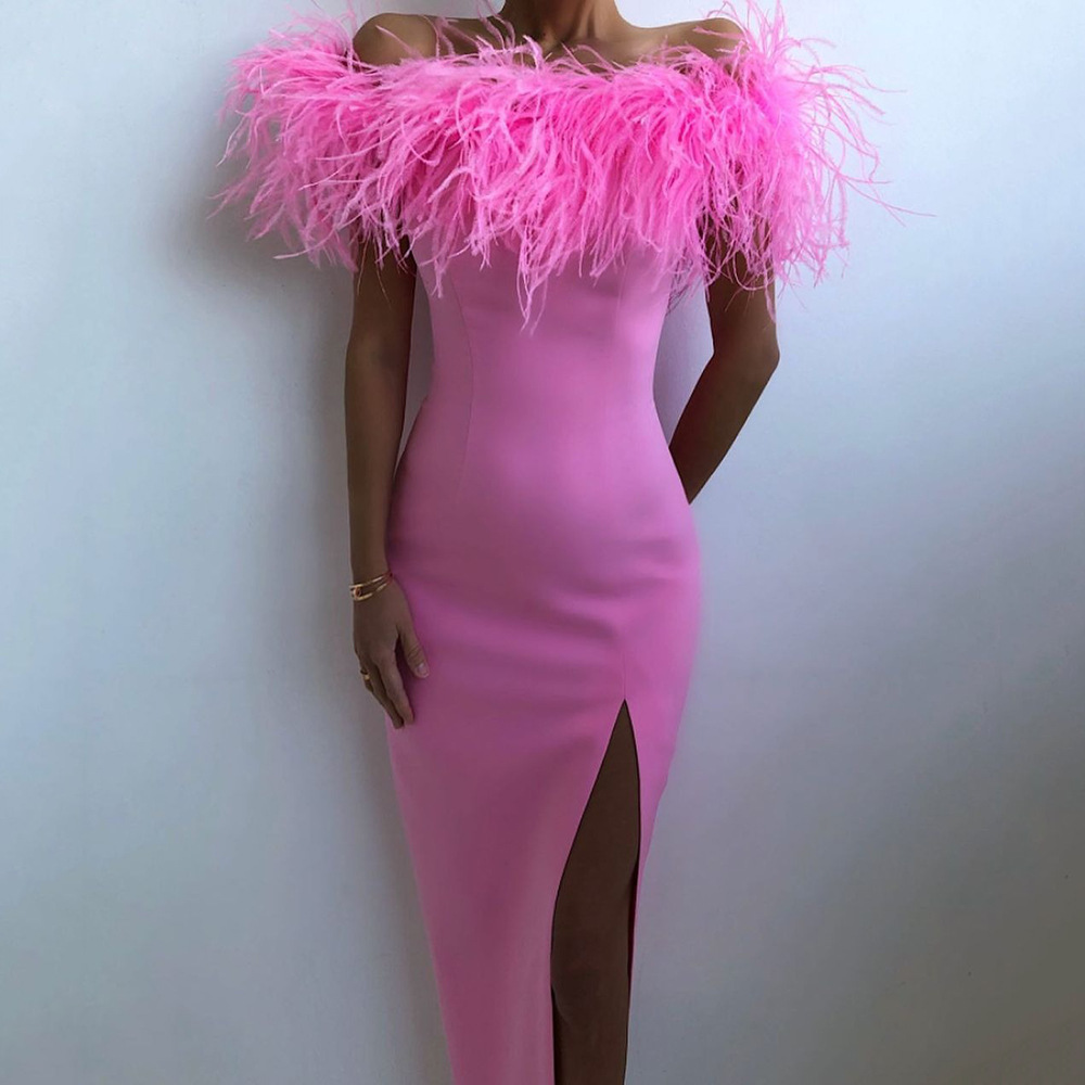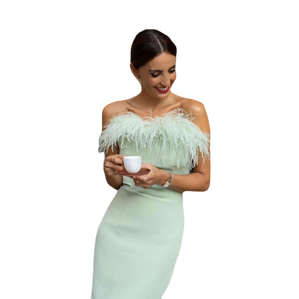 | nameOriginal | 2024 cross-border spring and summer new European and American women's off-shoulder evening dress feather socialite dress banquet temperament long dress |