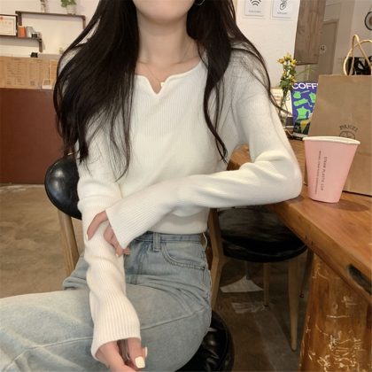 | nameOriginal | 2024 early autumn new knitted bottoming shirt women's autumn and winter inner sweater design sense niche V-neck long-sleeved top |