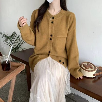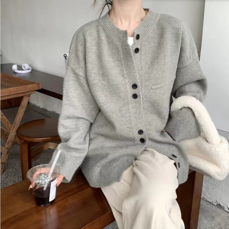 | nameOriginal | 2024 Early Spring New Arrival Grey Knitted Cardigan Women's Loose College Style Casual Lazy Little Man Sweater Coat |
