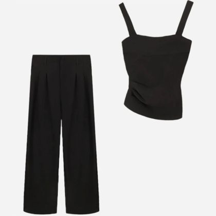 | nameOriginal | 2024 early spring new black vest wide leg long pants summer wear age-reducing foreign style wear with a set of women's clothing |