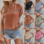 | nameOriginal | 2024 Europe and America Amazon Cross-border Women's Summer New Casual Solid Color Stitching Lace Hollow Short-sleeved Top for Women |
