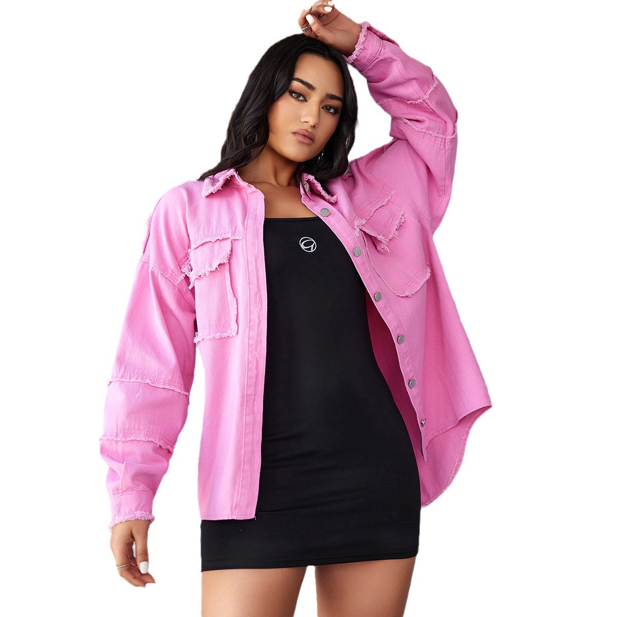 | nameOriginal | 2024 Europe and the United States cross-border Amazon independent station women's new solid color loose casual Denim coat in stock wholesale |