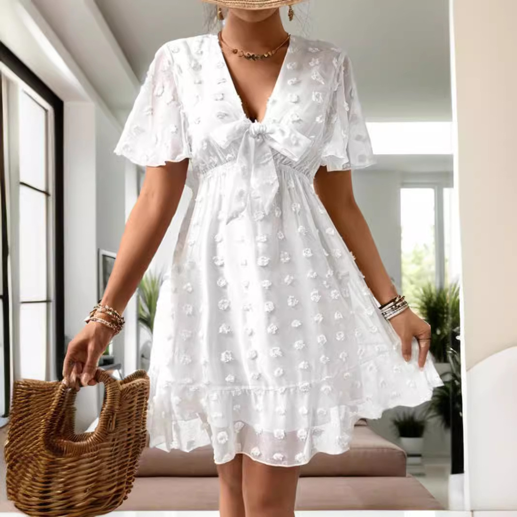 | nameOriginal | 2024 Europe and the United States cross-border foreign trade women's AliExpress Amazon summer chiffon V-neck bow short sleeve dress |
