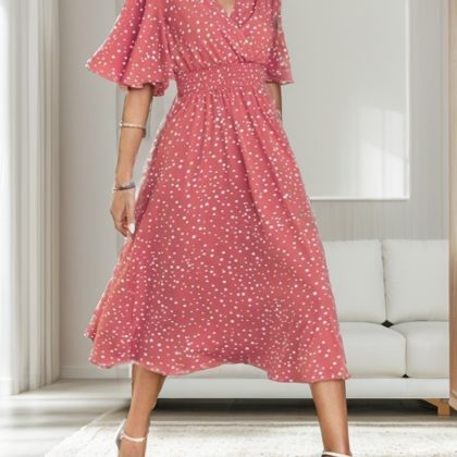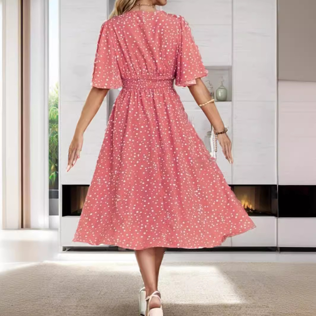 | nameOriginal | 2024 Europe and the United States cross-border foreign trade women's clothing AliExpress Amazon independent station wave point printing v-neck short sleeve dress |