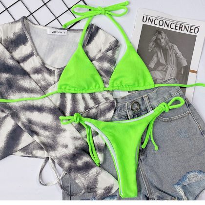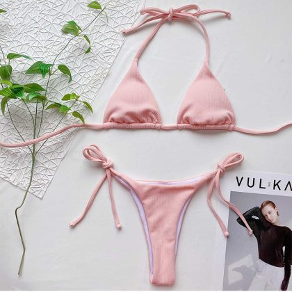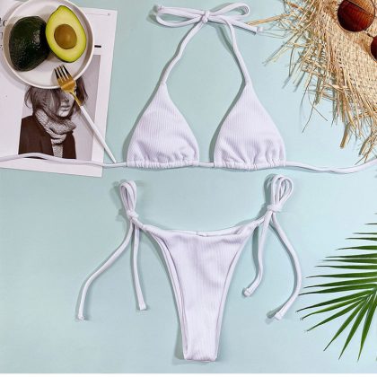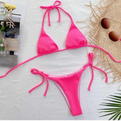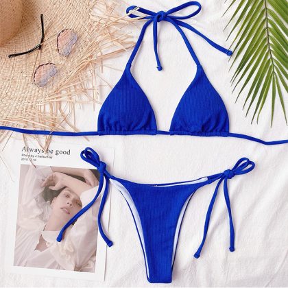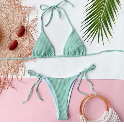 | nameOriginal | 2024 Europe and the United States cross-border new ladies split fashion bikini solid color special fabric Amazon in stock swimsuit |