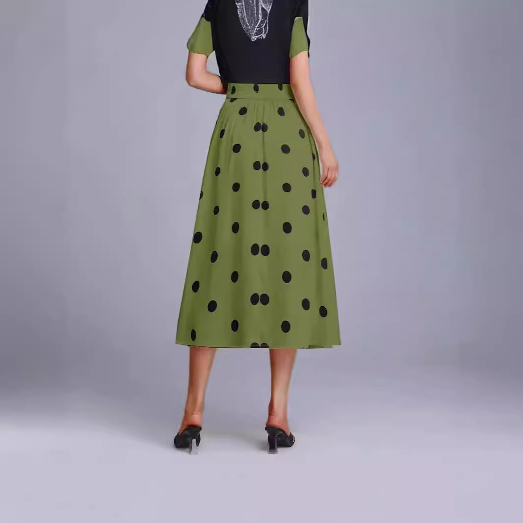 2024 European and American Amazon New Draping Wave Dot Skirt Women's Summer Mid-length Large Swing A- line Skirt Long Skirt