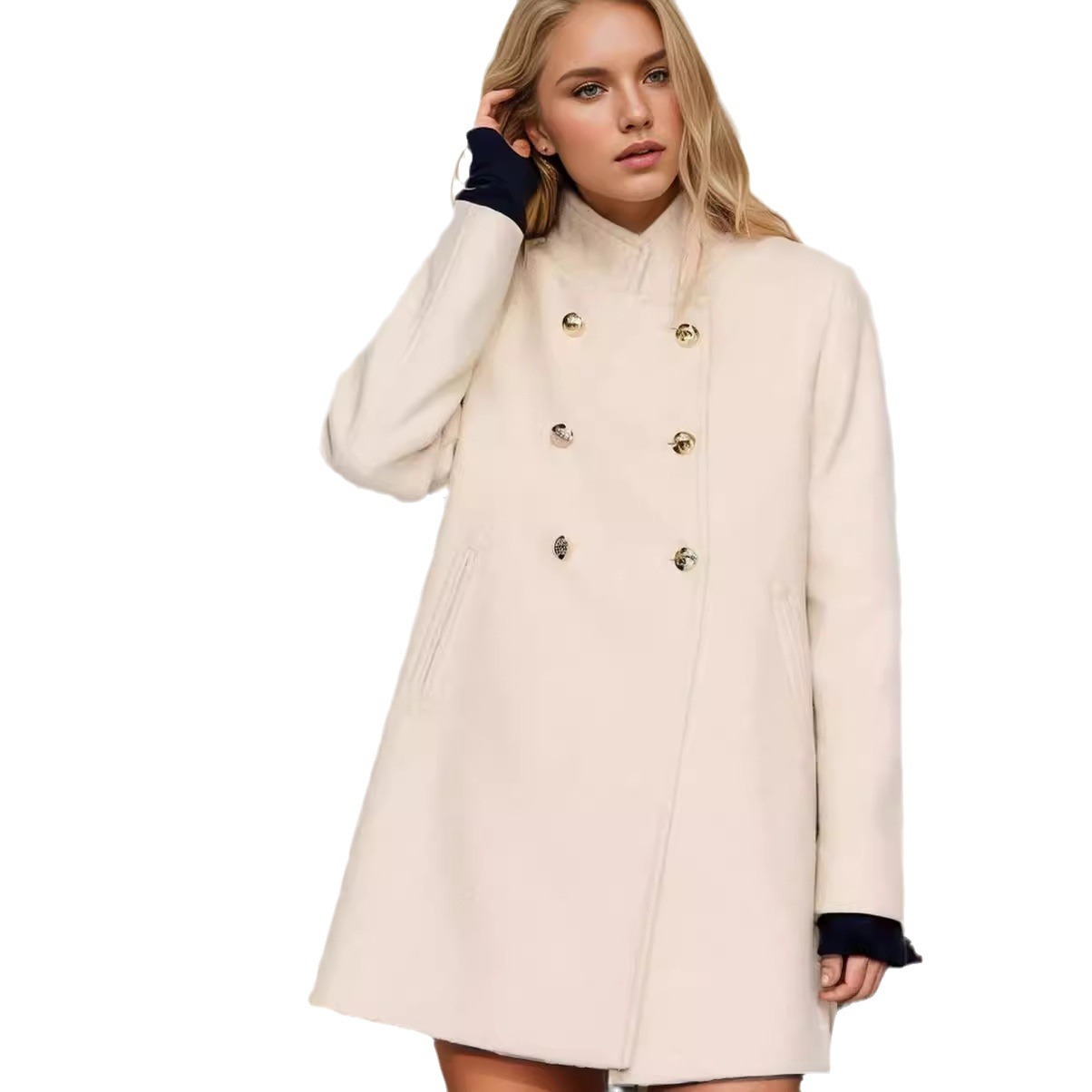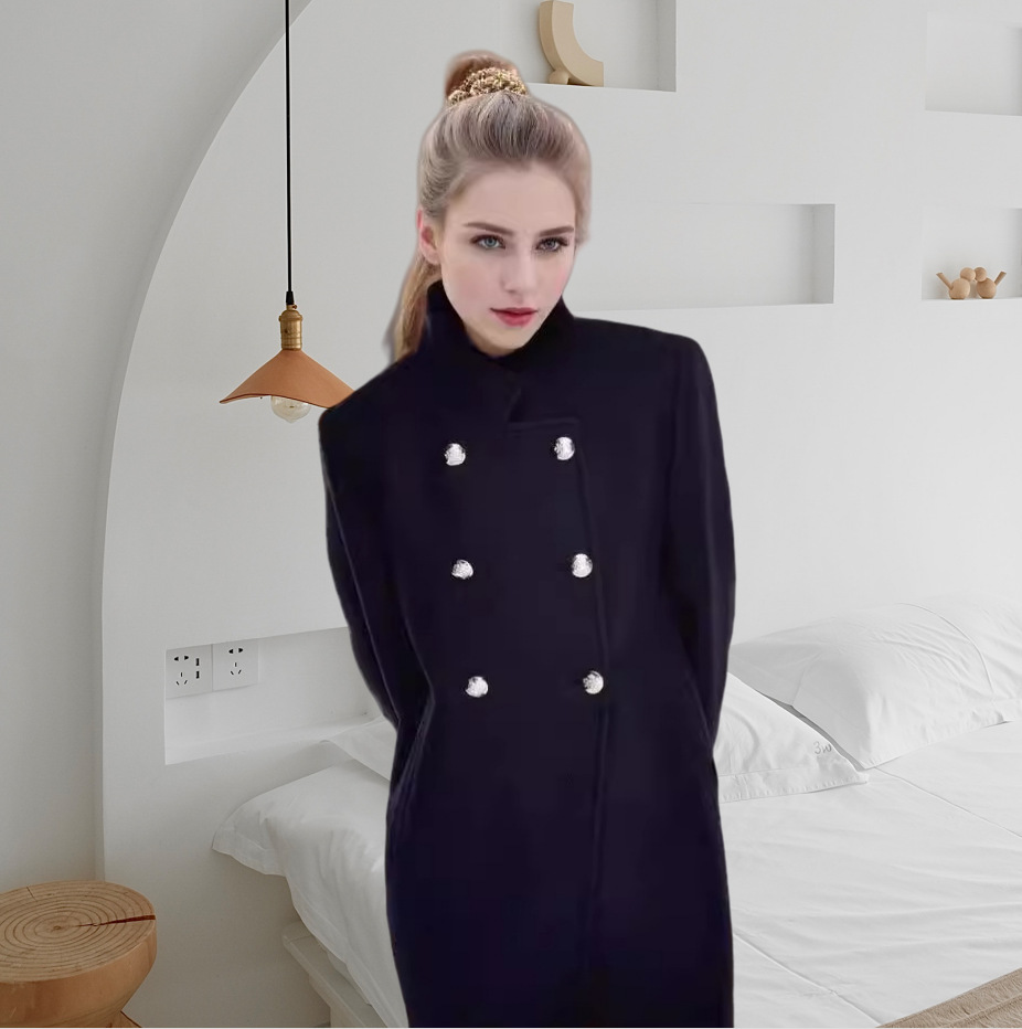 | nameOriginal | 2024 European and American Cross-border Autumn and Winter Mid-length Small Vertical Collar Slim Solid Color Slim Fit Women's Woolen Coat Coat |