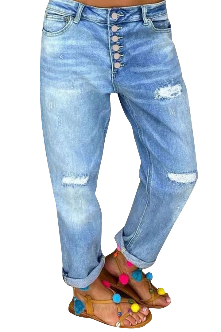 | nameOriginal | 2024 European and American cross-border new blue ripped jeans women's loose straight casual trousers in stock |