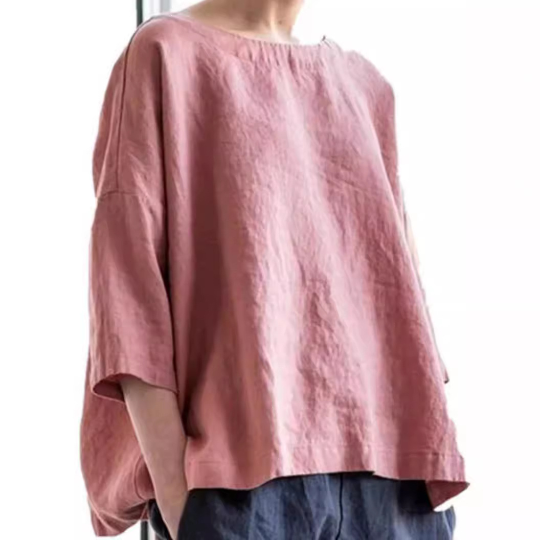 | nameOriginal | 2024 European and American Cross-border Women's Round Neck Cotton Linen Loose All-match Artistic Retro Short-sleeved Blouse |