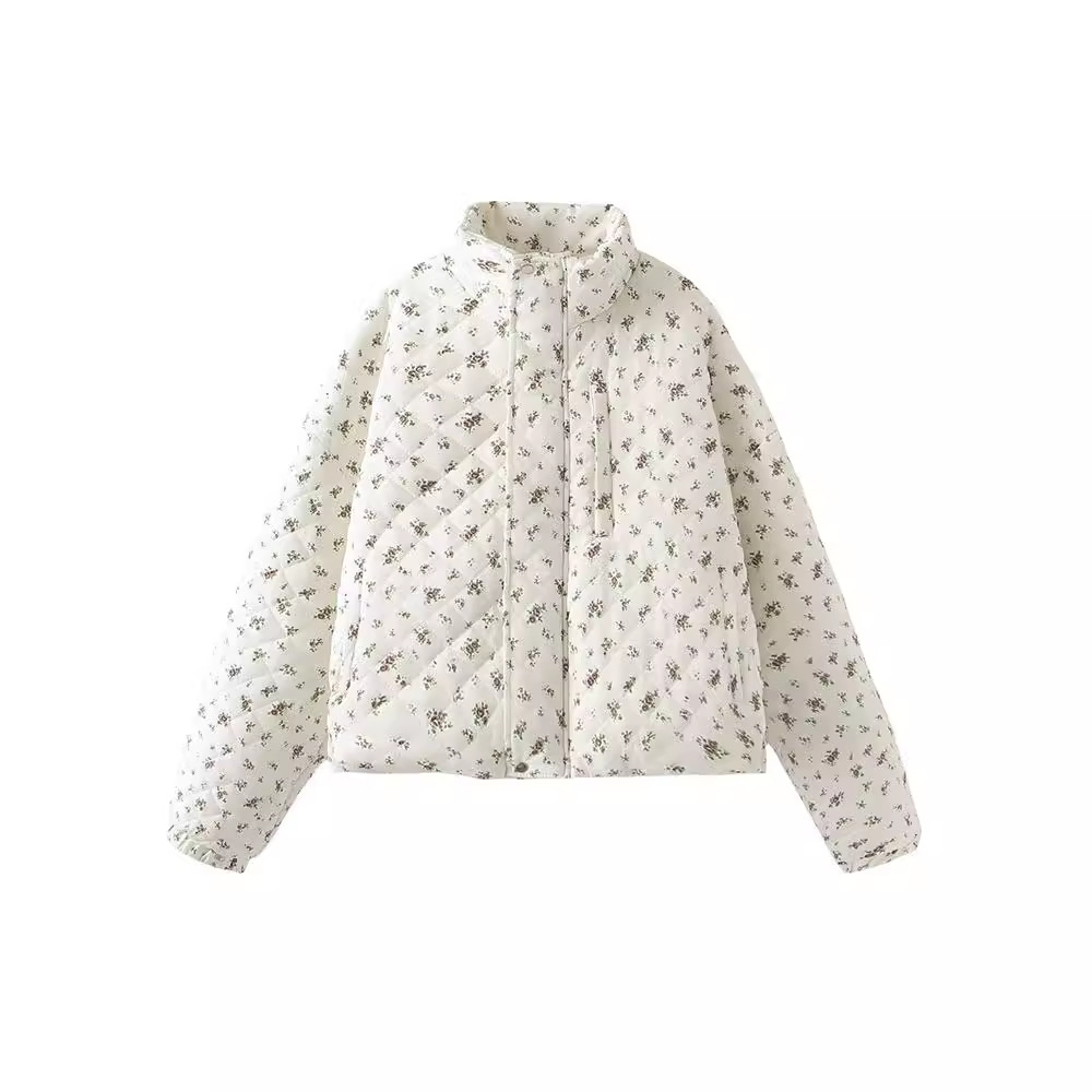 2024 European and American Spring and Summer New French Elegant Fashion Casual All-match American Floral Thickened Cotton-padded Jacket