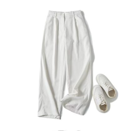 2024 European and American style foreign trade wholesale spring new European and American style leisure commuter style pendant linen wide leg trousers