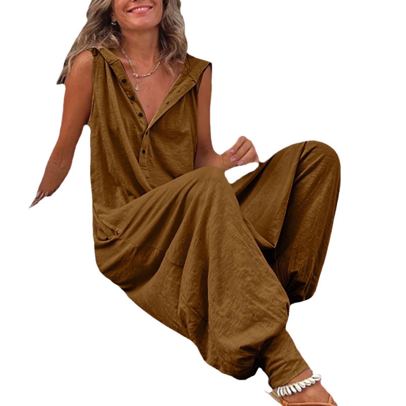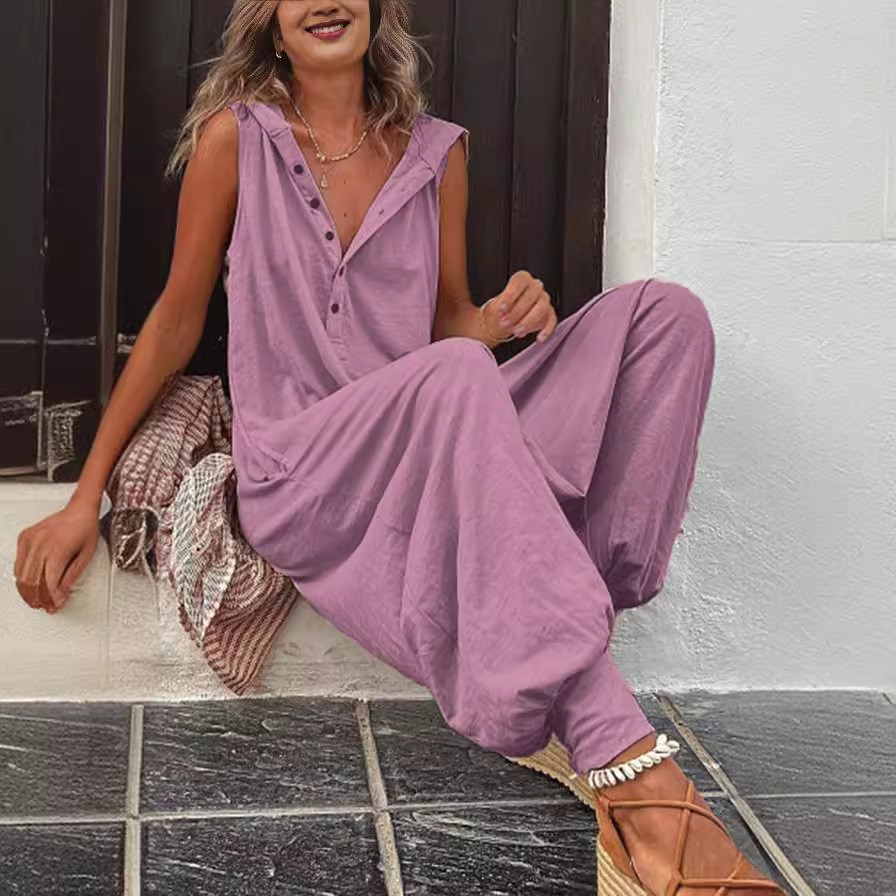 | nameOriginal | 2024 European and American women's clothing ebay Amazon independent station popular button hooded sleeveless trousers jumpsuit baggy pants |