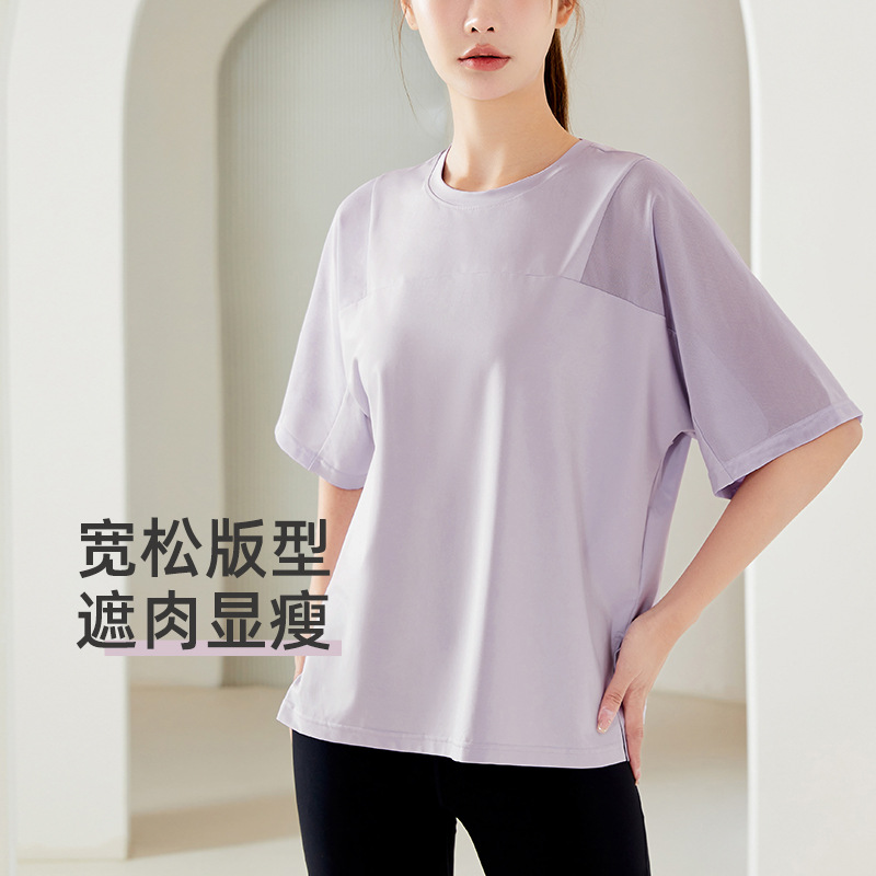 | nameOriginal | 2024 Fitness Clothes Women's Summer Loose Breathable Mesh Split Short Sleeve Professional Sports Running Yoga Clothes Top T-Shirt |