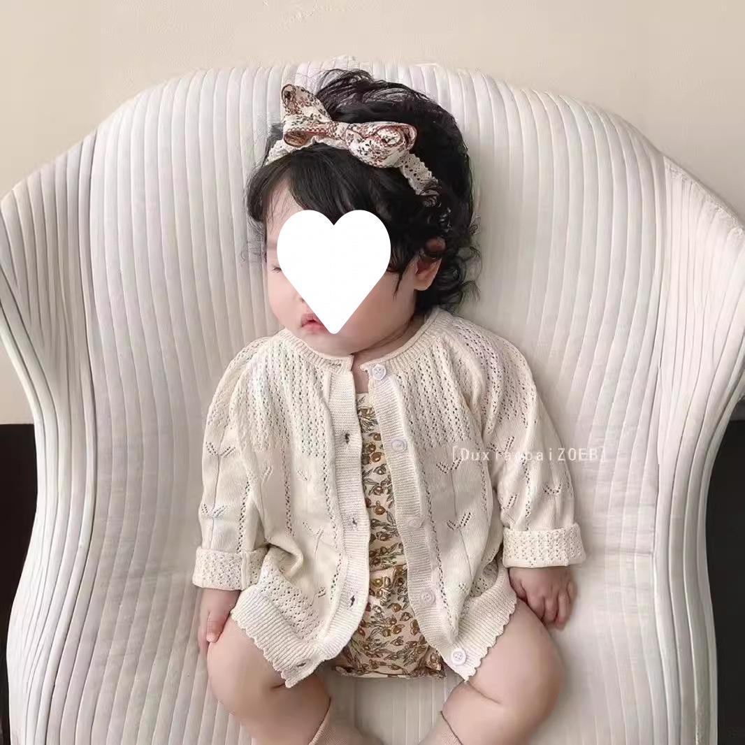 2024 Girl's Knitted Cardigan Spring and Summer Thin Air-conditioning Shirt Outer Wear Baby's Sunscreen Shirt Hollow Coat