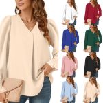 | nameOriginal | 2024 independent station wish Amazon explosion autumn simple fashion solid color V collar long sleeve shirt for women |