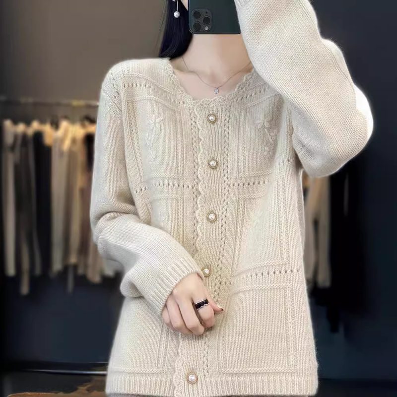 | nameOriginal | 2024 Korean Style Women's Lazy Style Long Sleeve Hollow Out Cardigan Spring and Autumn New Round Neck Handmade Crochet Cardigan |