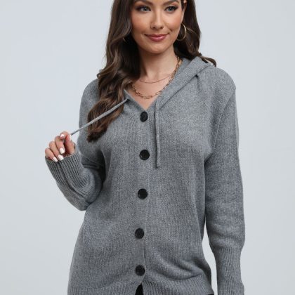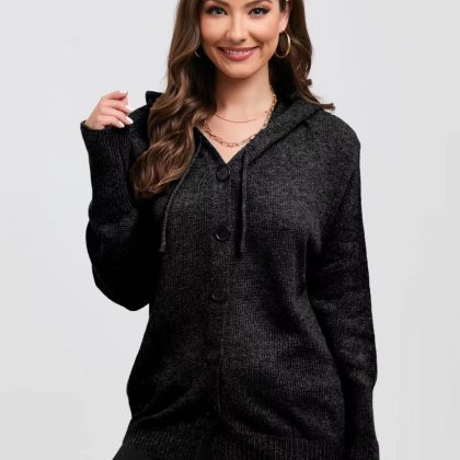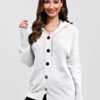 | nameOriginal | 2024 New Amazon European and American Cross-border Drawstring Knitted Cardigan Jacket for Women Solid Color Hooded Single-breasted Sweater for Women |