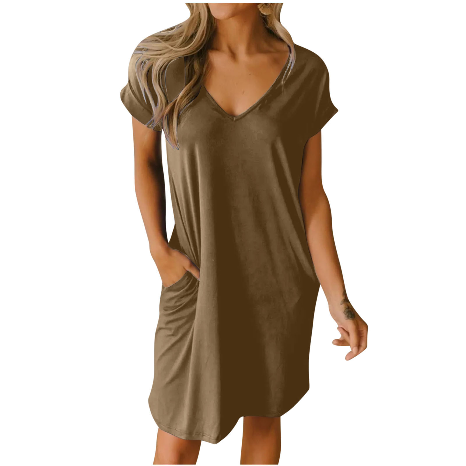 | nameOriginal | 2024 New Amazon popular solid color V-neck short sleeve pocket midi dress dress women's clothing |