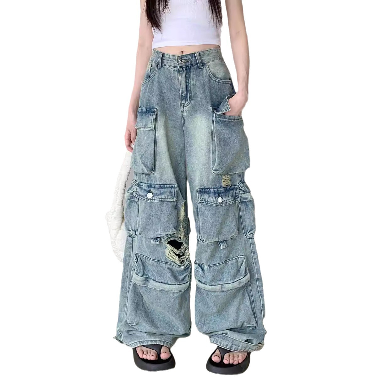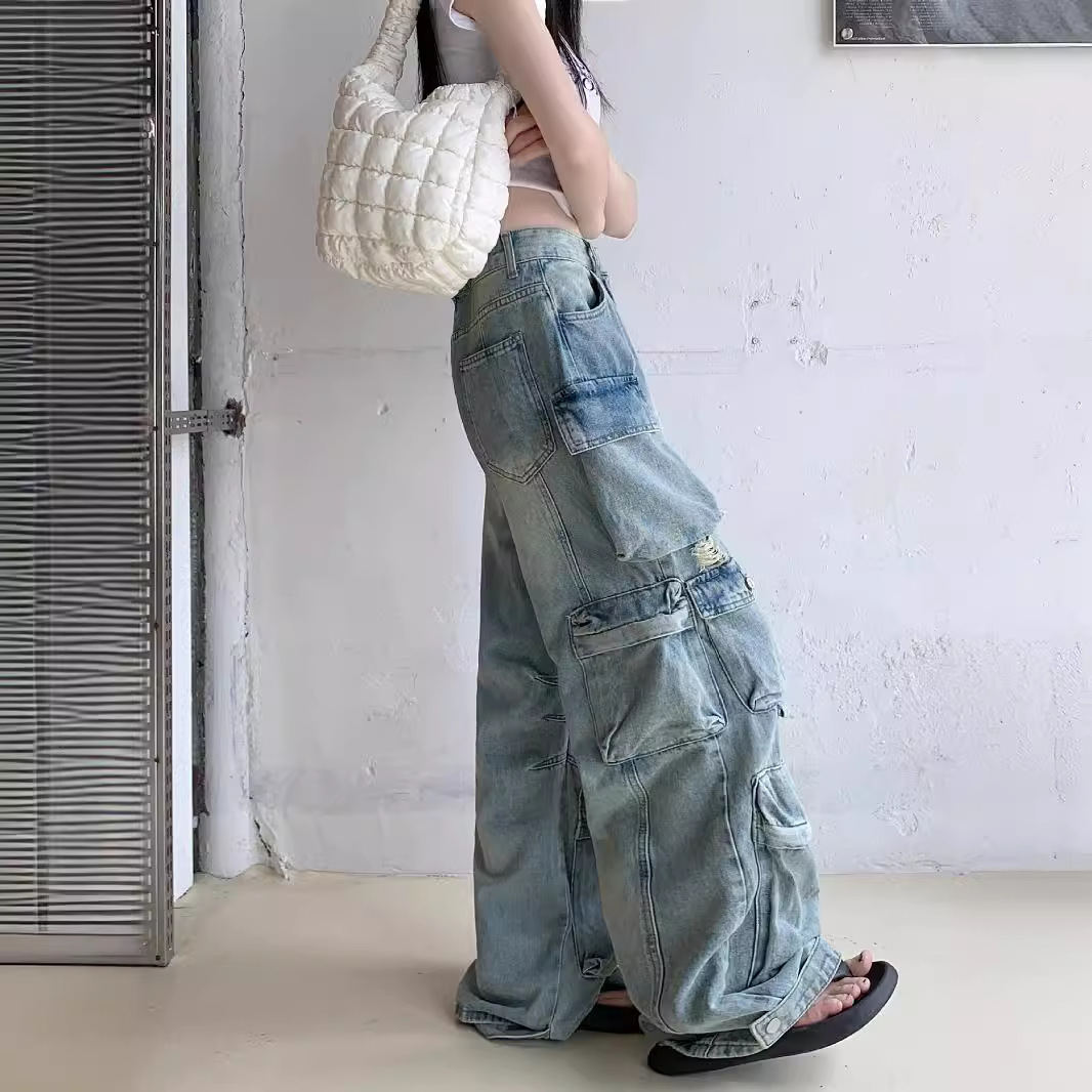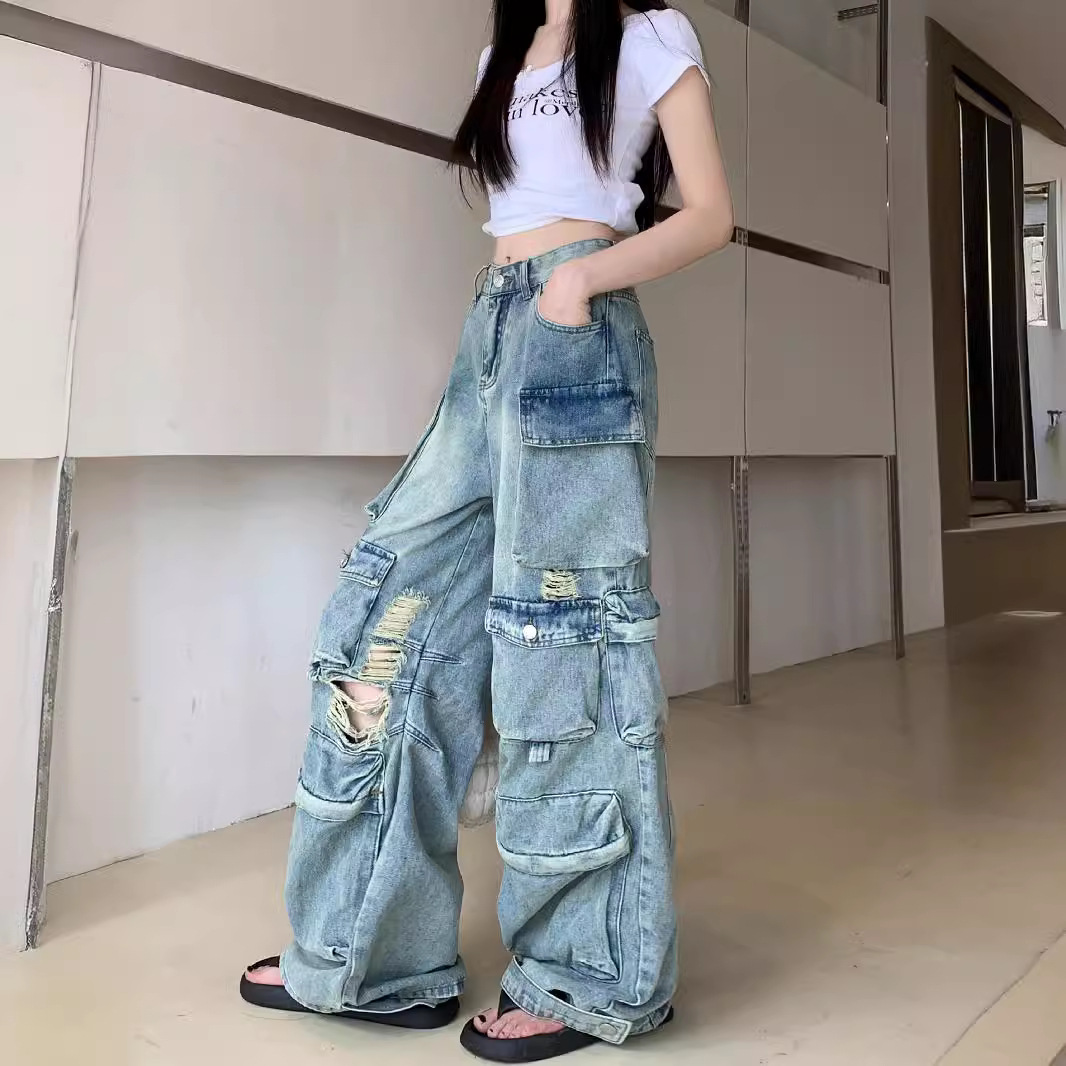 | nameOriginal | 2024 New American Style Old-fashioned Washed Ripped Crock Jeans Women's Street Straight Loose Wide-leg Trendy Trousers |