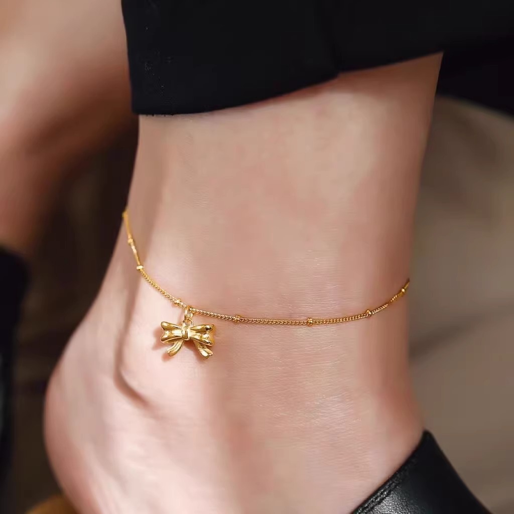 | nameOriginal | 2024 New Arrival Light Luxury High-Level Escape Princess Anklet Women's Bow Round Bead Elegant Niche All-Match Girlfriend Foot Chain |